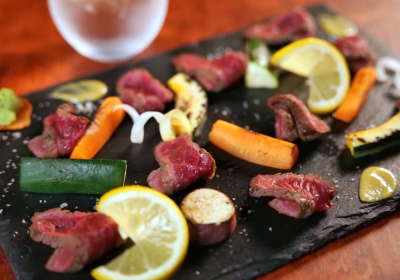 牛ステーキに成り代わる存在「馬肉レアステーキ」。サシの入った部位すらも脂が重たくなく、柔らかな食感と肉の味わいが楽しめます。