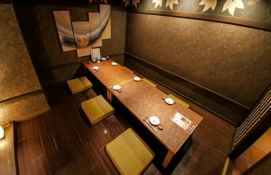 掘りごたつのお席はビジネスシーンの宴など、記念日や大切な方とのお食事の時間をゆったりとお過ごしいただけます。