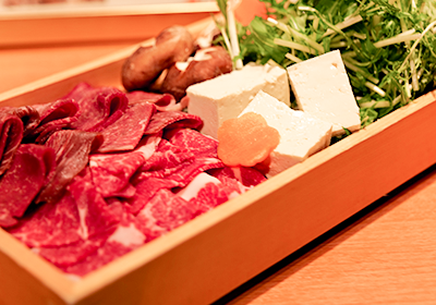 選べるメイン「馬肉レアしゃぶしゃぶorすき焼きor焼肉」