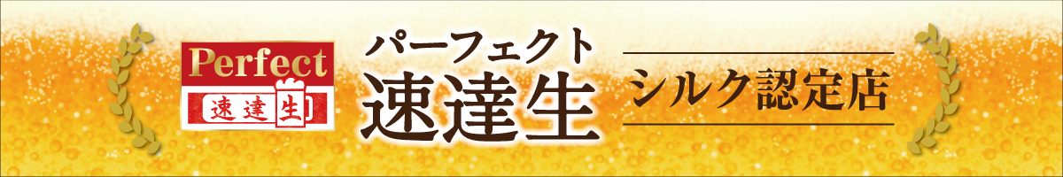 当店は「パーフェクト速達生シルク認定店」です。 速達生と通常のビールとの違いは「徹底してこだわっている鮮度」そして、鮮度にこだわった故に東海地方でしか飲めない新鮮な生ビールを当店にてご提供しております!
